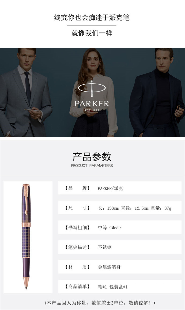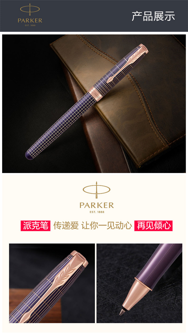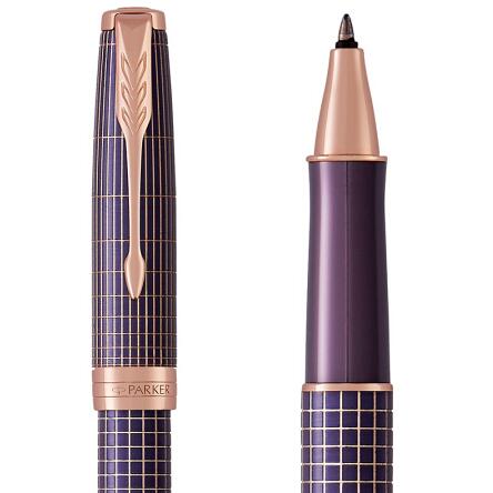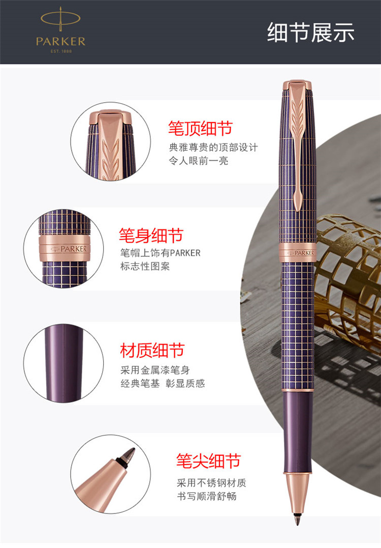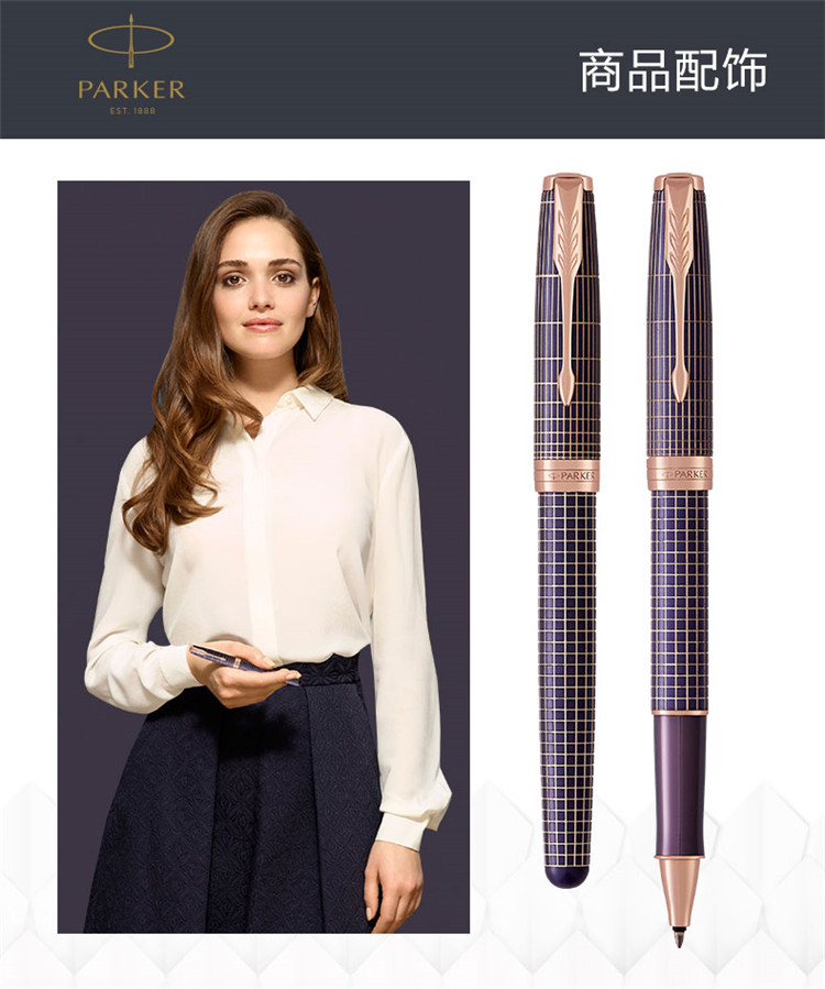 商品名称:派克(PARKER)2015卓尔紫砂流年宝珠笔 材质:925纯银+金属漆笔身 数量:单支装 零售价:¥3880 纯银笔帽和笔身表面涂有紫色丽雅漆,雕刻格纹图案 并在凹槽处填充玫瑰金。配合镀玫瑰笔饰和18k金镀 玫瑰金笔尖。匹配派克豪华礼盒。