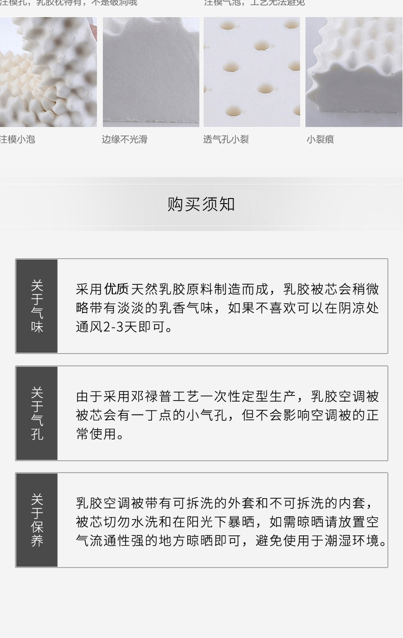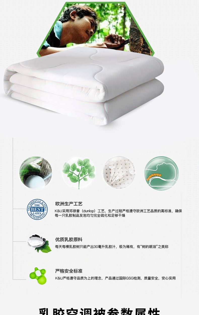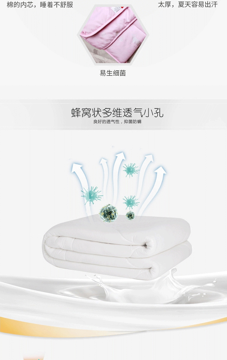 品名:泰国乳胶被 型号: ZMN-RJB-01 产品规格:200cm*230cm 面料:优质棉 填充:进口乳胶 包装:彩盒 产品描述:本产品采用天然乳胶柔软亲肤,抗菌防螨,干爽透气为您打造健康睡眠