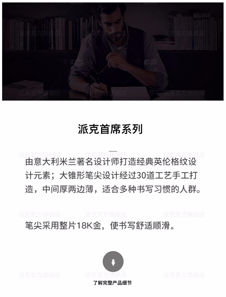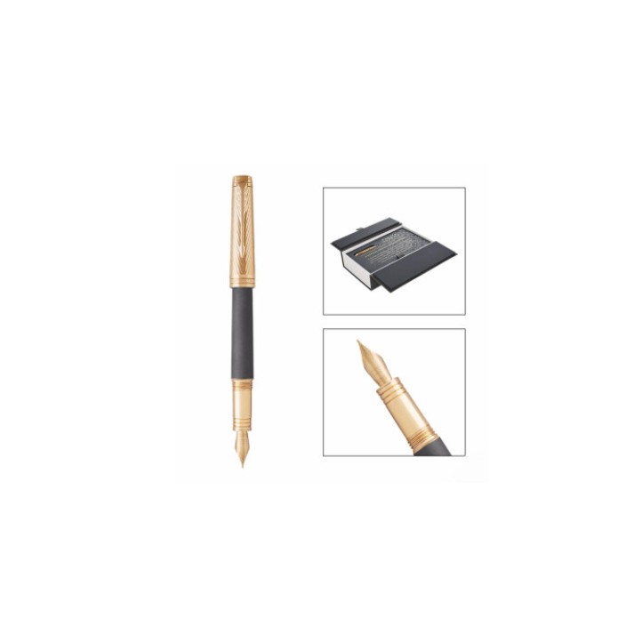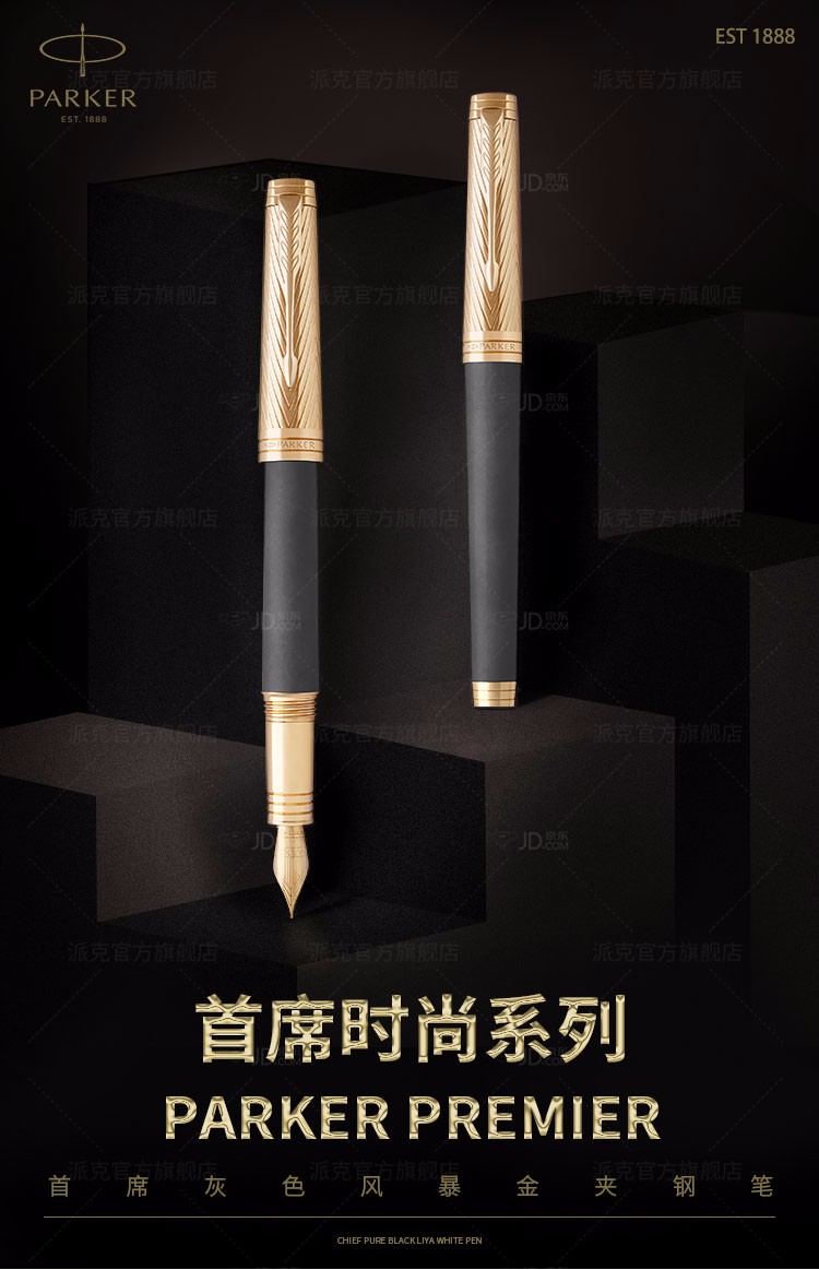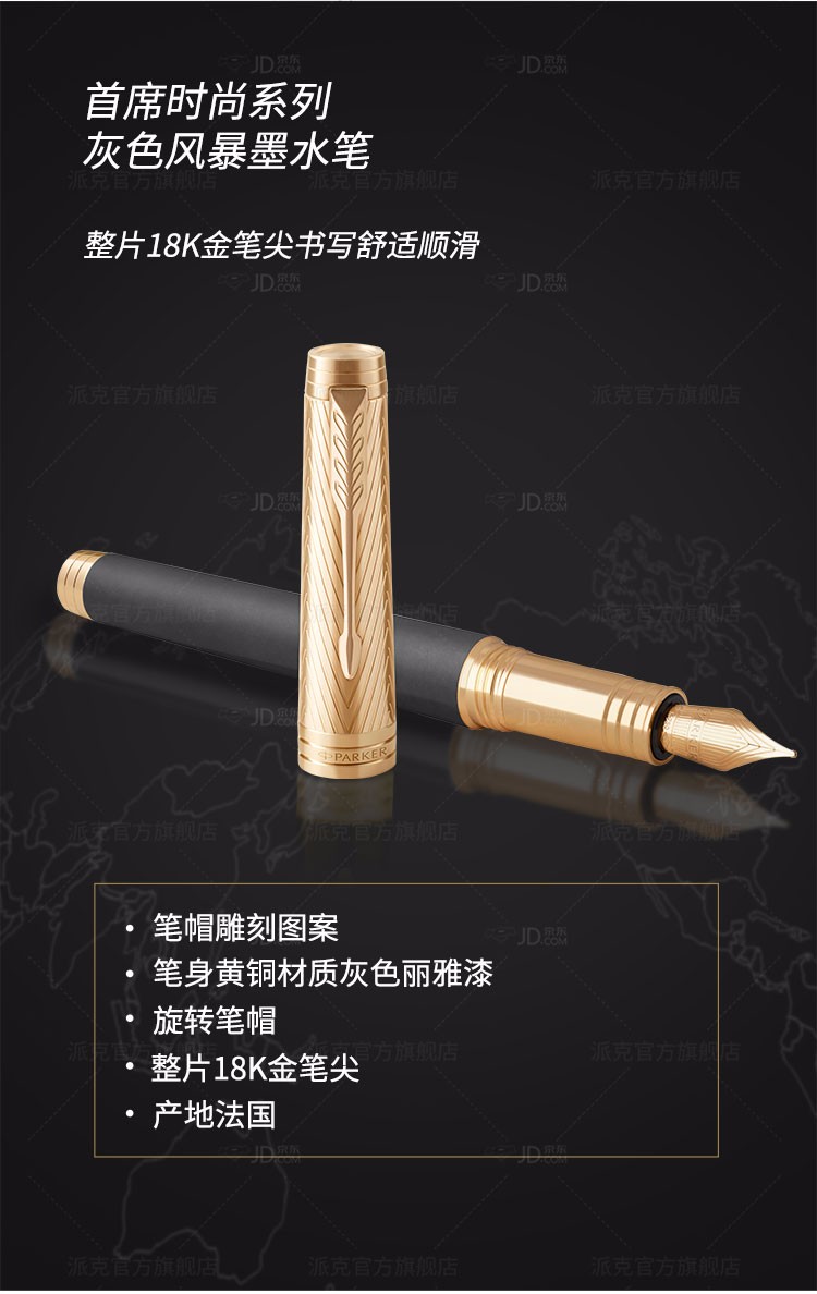 商品名称:派克(PARKER)席灰色风暴金夹墨水笔 类型:钢笔 商品属性:笔尖:18K金 笔身:深灰涂漆 笔饰:23K金饰面 笔帽:黄铜蚀刻+浅金饰面 数量:单支装 零售价:¥6358