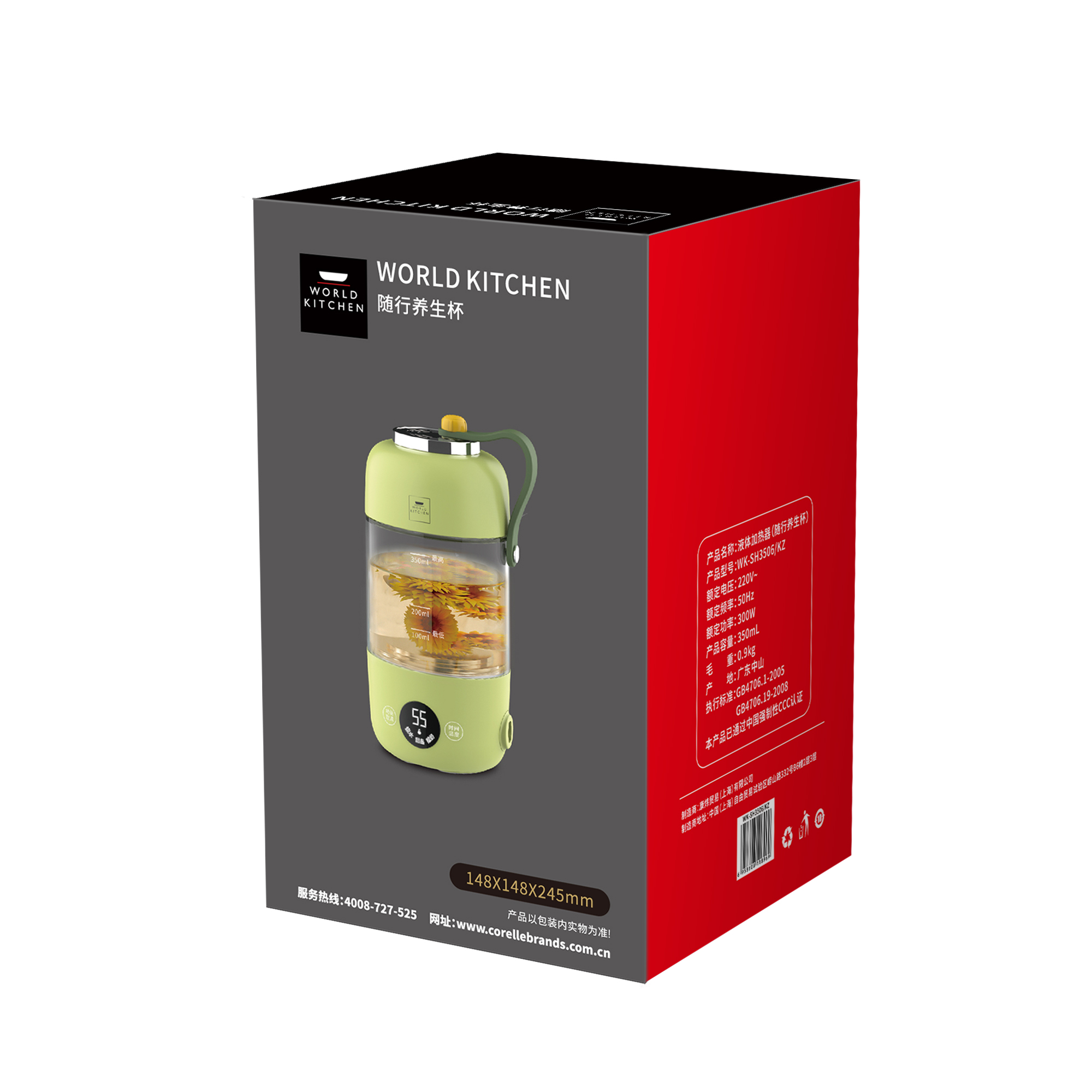 容量 - 350ML 颜色 - 绿色 功率 - 300W 产品 - 96*113*203 mm 彩盒 - 280*62.2*186mm 外箱 - 463*463*513mm 彩盒毛重 - 0.9kg(包含1台整机) 外箱毛重 - 17.1kg 包装方式 - 彩盒+外箱 装箱数 - 18台/箱