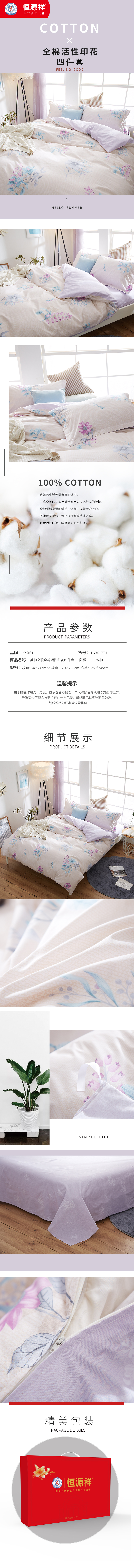恒源祥床品.全棉活性印花四件套-美棉之歌HYX017TJ