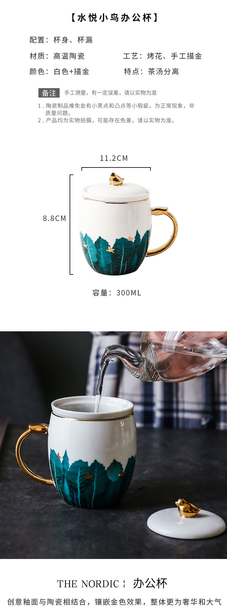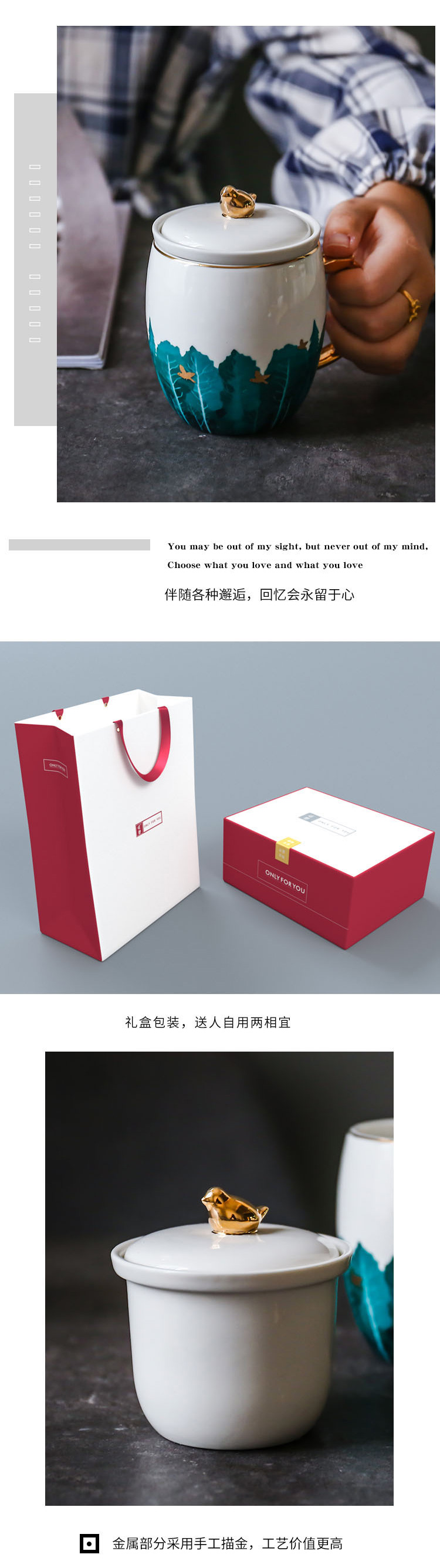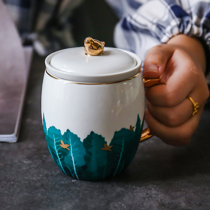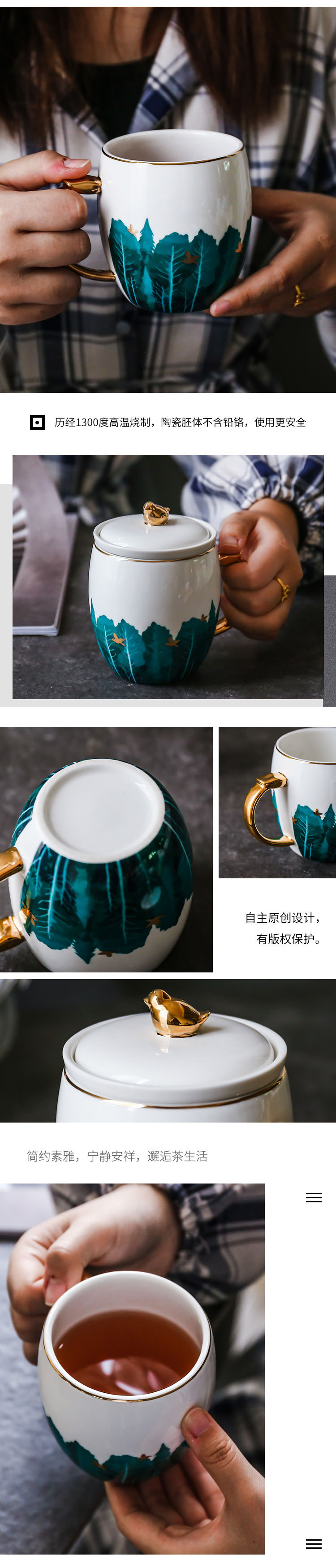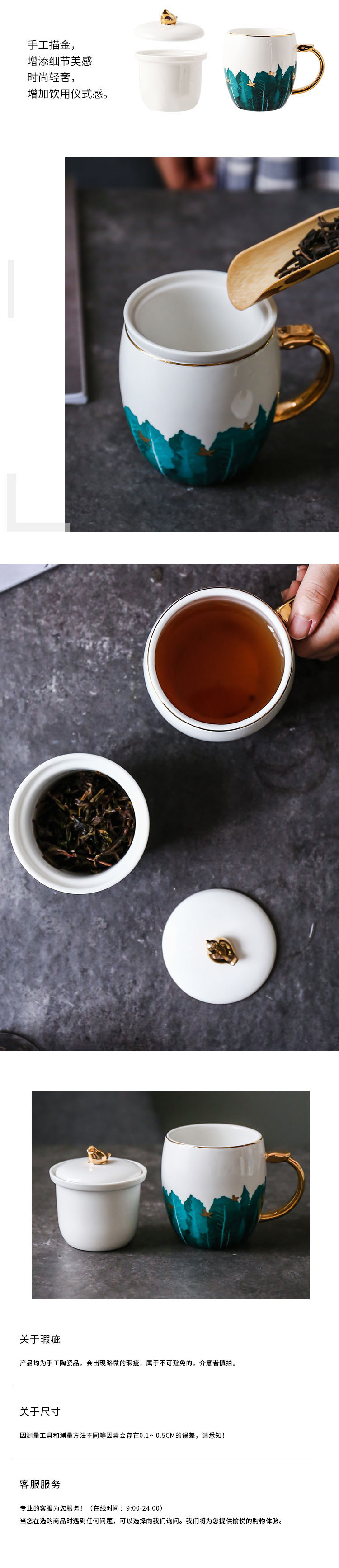 容 量 :300ML 箱 率 :24 材 质 :彩釉耐热陶瓷+浮雕烤花 颜 色 :白色+描金 参 数 : 办公杯X1