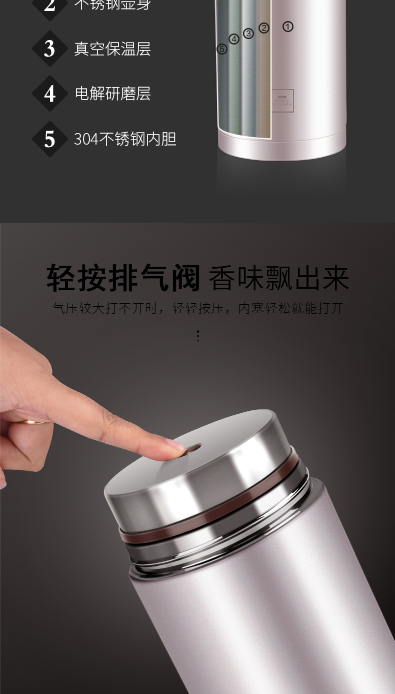 容量 - 800ML 颜色 - 香槟金 材质 - 内胆SUS304不锈钢 产品 - 105*200mm 彩盒 - 116*116*208mm 单台毛重 - 0.65kg 外箱 - 480*365*645mm 装箱数 - 36个/箱 外箱毛重 - 24.5kg 零售价;279.00元