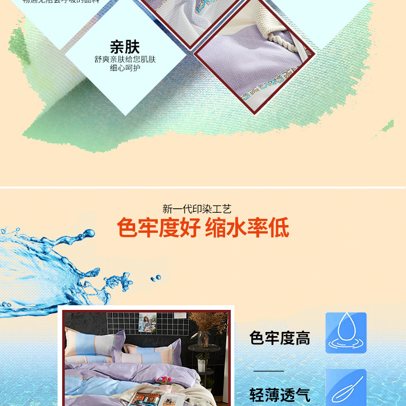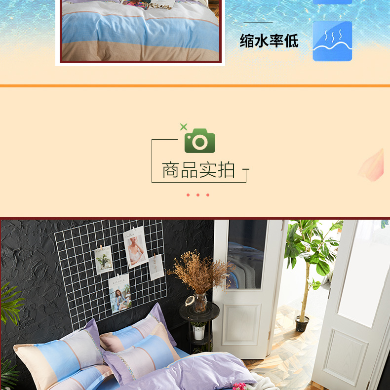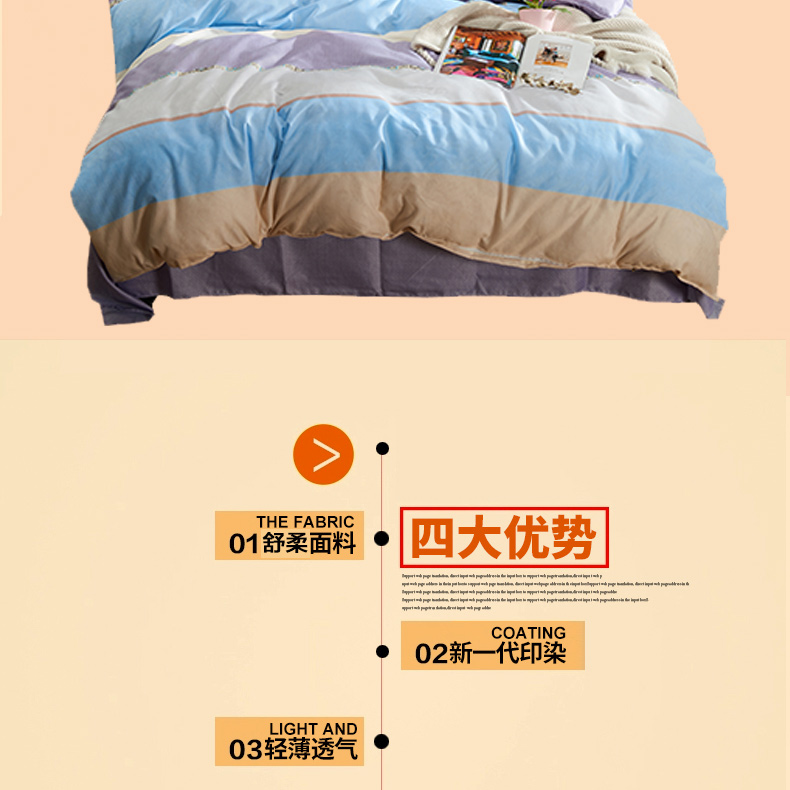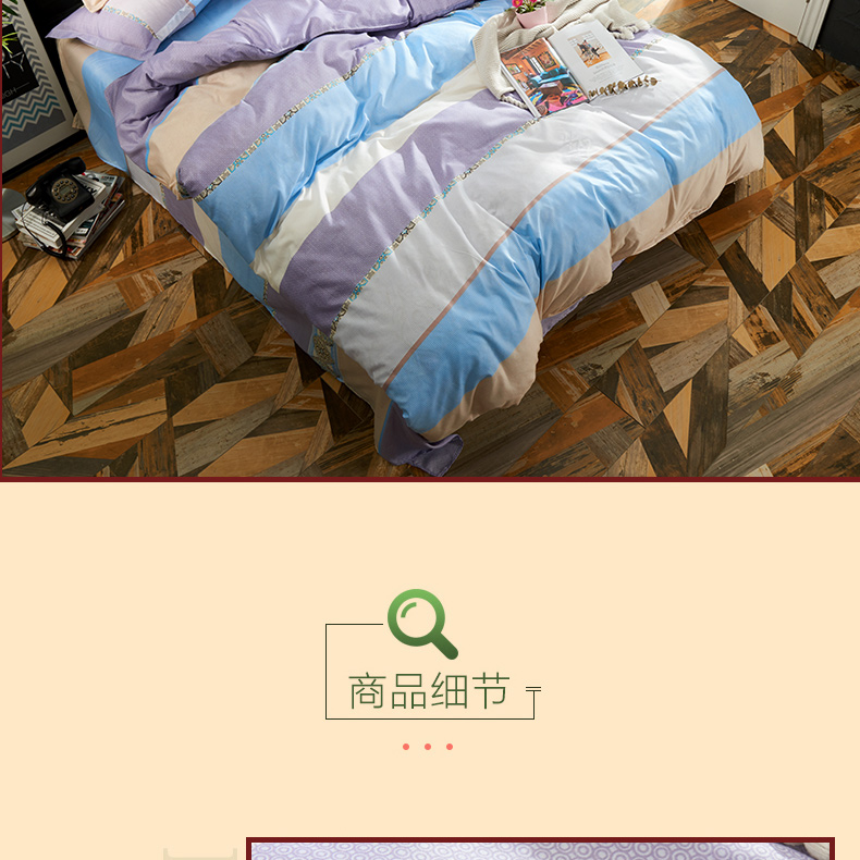 货号:LK-6232 面料:生态棉 规格:被套:200*230cm*1 床单:230 x 230 cm X 1 枕套:48 x 74 cm X 2 零售价:596元