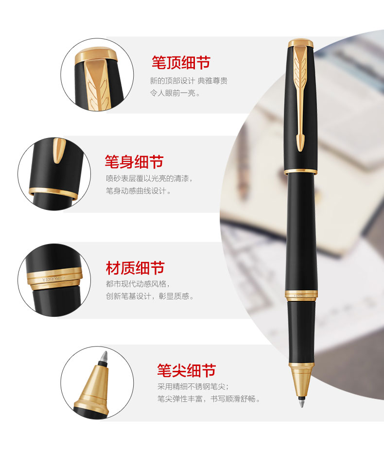 商品名称:派克(PARKER)都市磨砂黑杆金夹宝珠笔 材质:金属笔身 数量:单支装 零售价:¥458