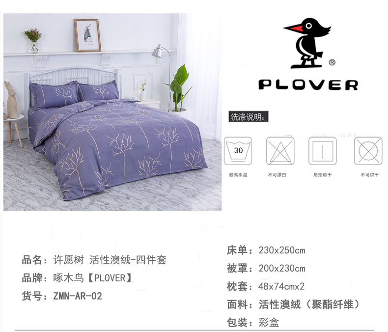 啄木鸟床品许愿树 活性澳绒-四件套 ZMN-AR-02