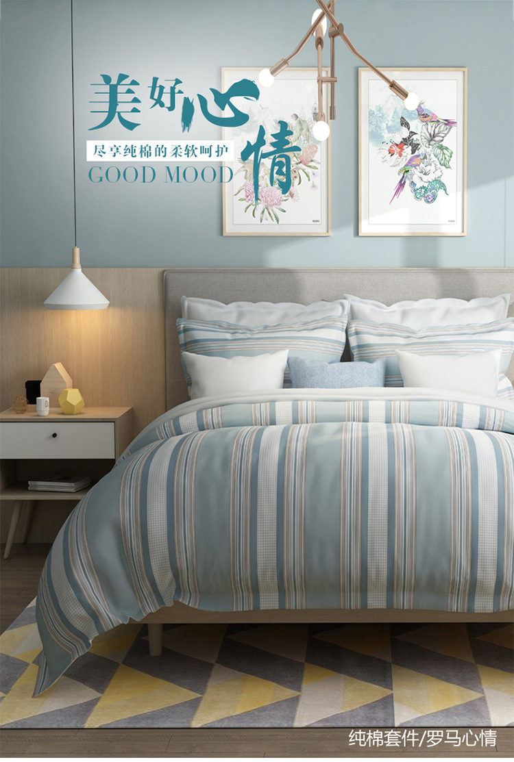 材质:100%棉 规格: 床单:230*250 被套:203*229 枕套:74*48*2
