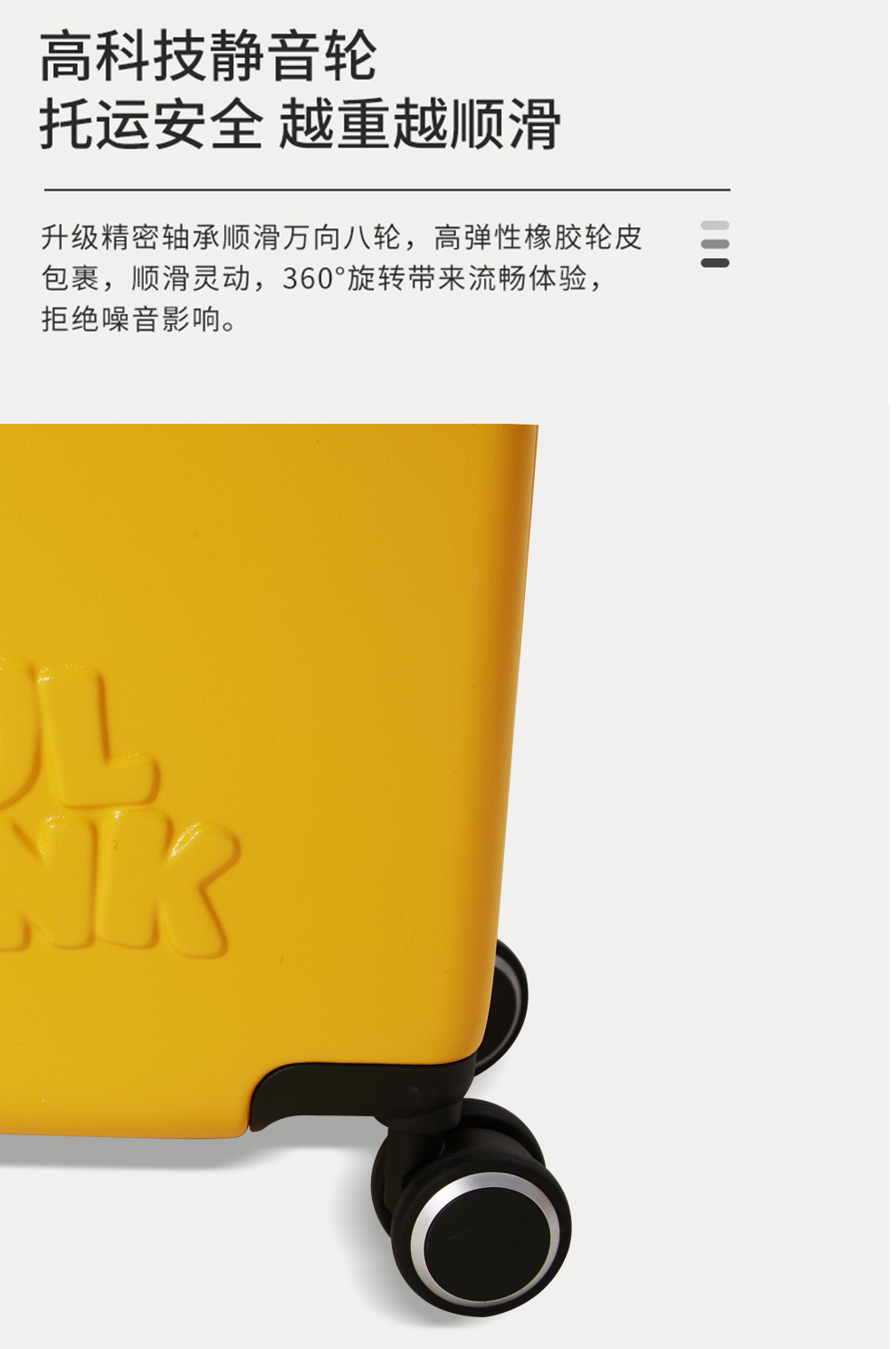3、360度静音万向轮耐磨加厚万向轮,双排、静音、耐磨、实用、灵动自如;