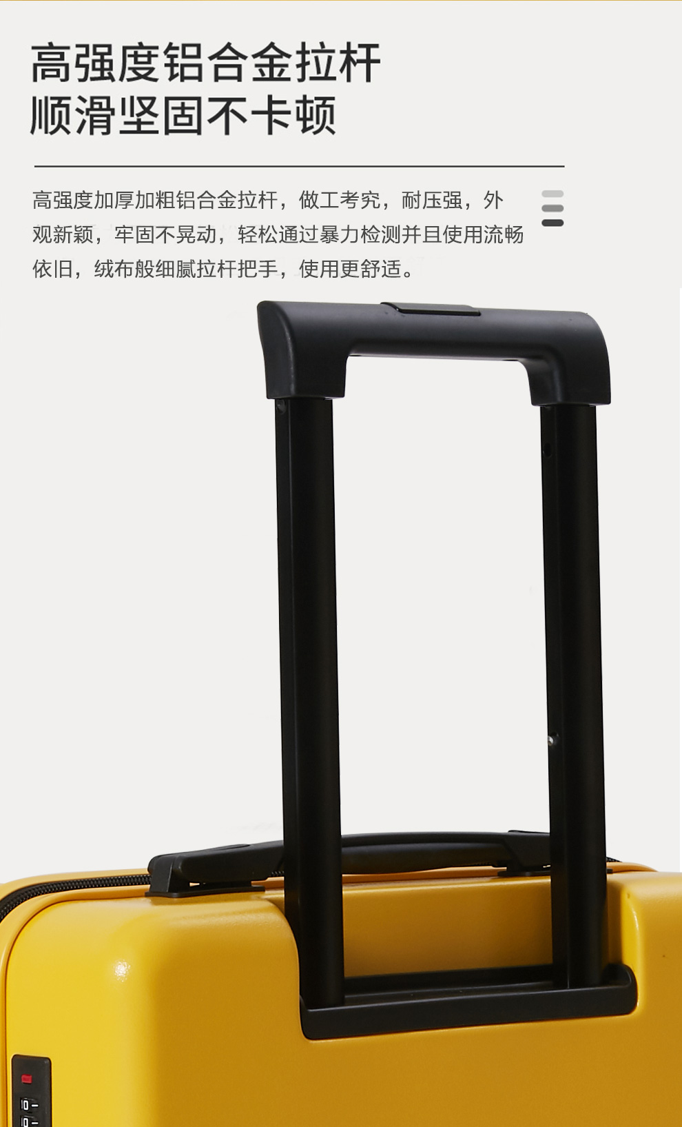2、高强度加厚加粗铝合金拉杆,做工考究,耐压强,外观新颖,牢固不晃动;