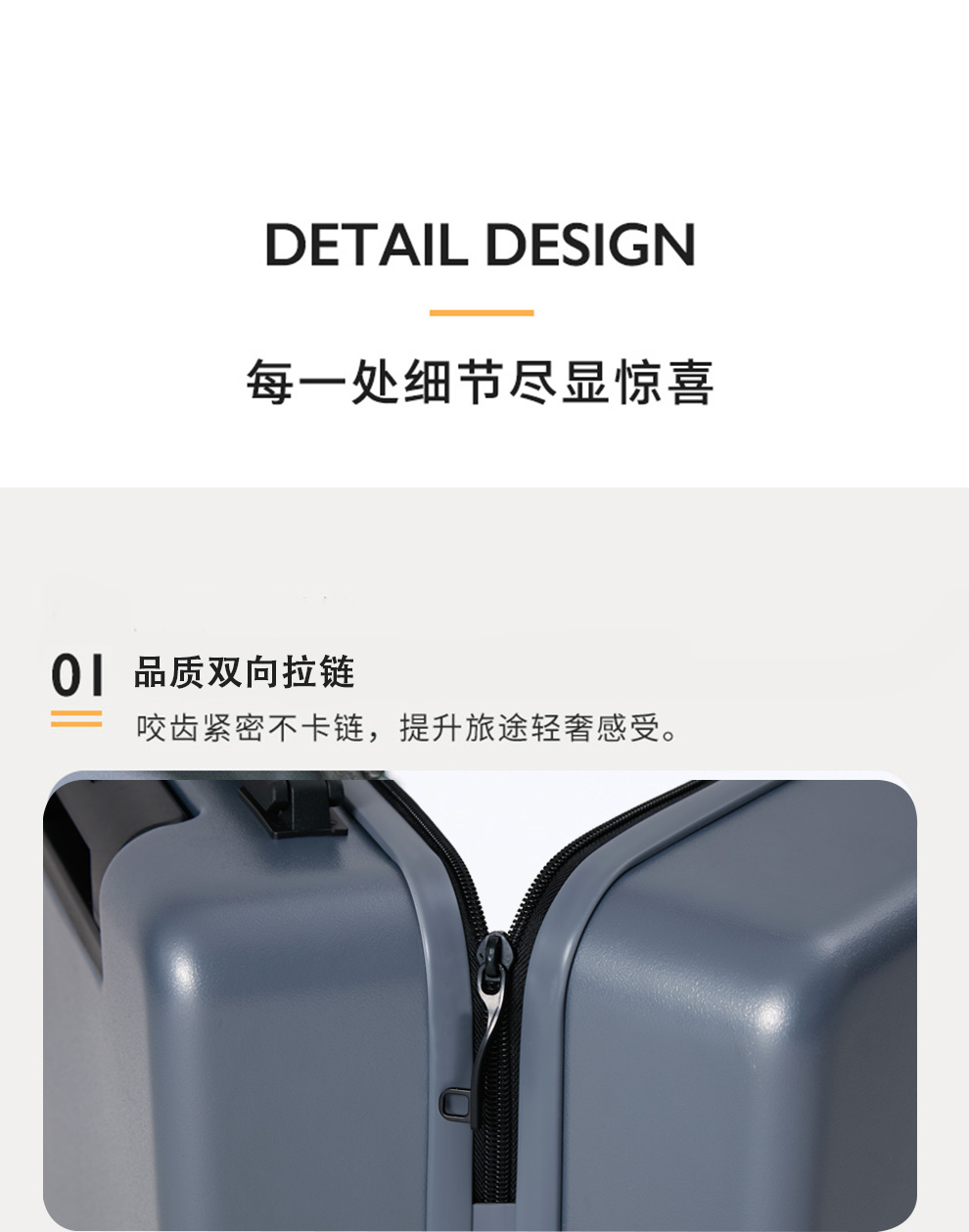 5、内嵌式锁具,双向拉链、实用方便。