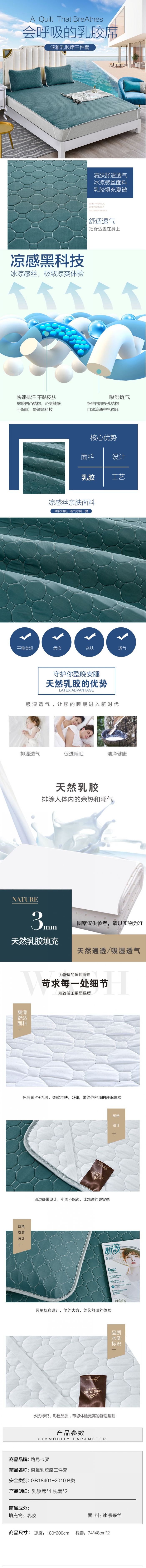 1、乳胶寝具的特点为自然通风散热快,使空气流动,散发体内的闷热,让您睡觉时保持清凉舒服。2、内芯由天然乳胶制成,无毒性,软硬适中,不易变形。3、全面透气,分布平均,透气性佳,具通气效果,能使空气自动流通,迅速散发热气,具备冬暖夏凉的特性。
