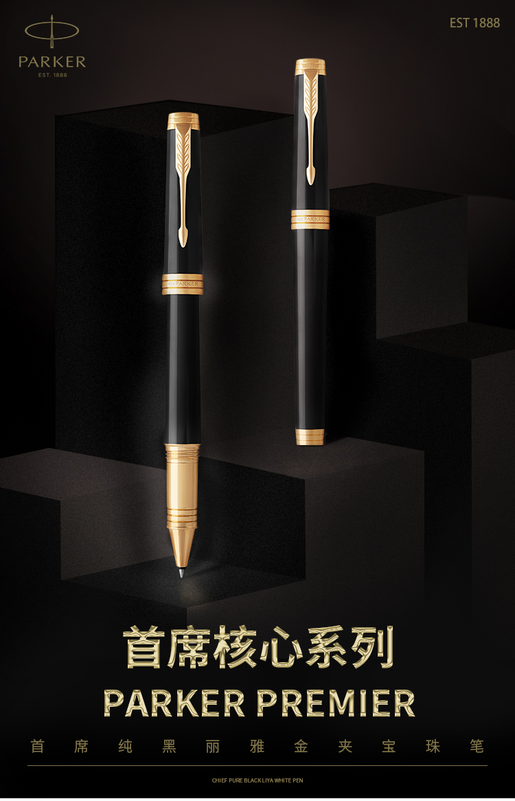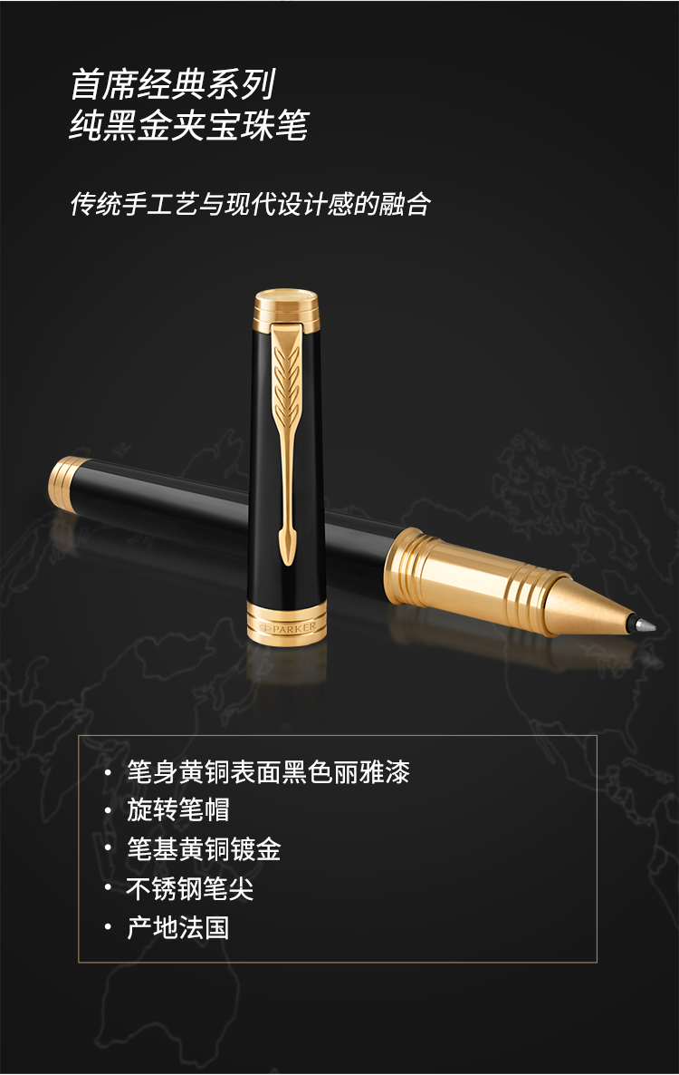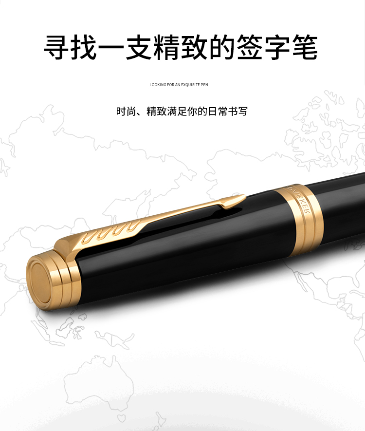 派克席纯黑丽雅金夹宝珠笔商务办公