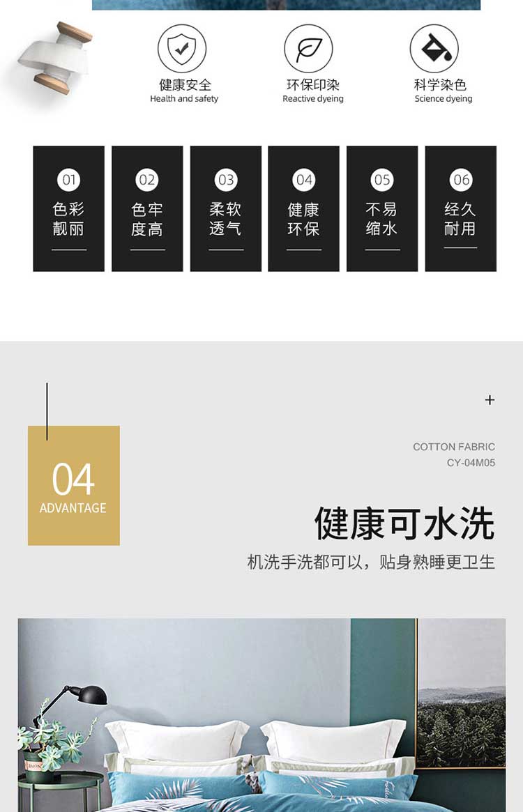◆ 活性印染工艺,不添加偶氮和甲醛,不含对人体有害的物质。