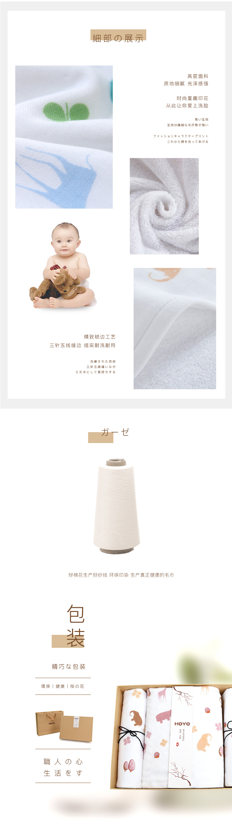 HOYO毛巾套装7356-布艺印河马毛巾浴巾三件套