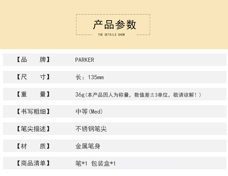 商品名称:派克(PARKER)都市金属银白夹宝珠笔 材质:金属笔身 数量:单支装 零售价:¥458