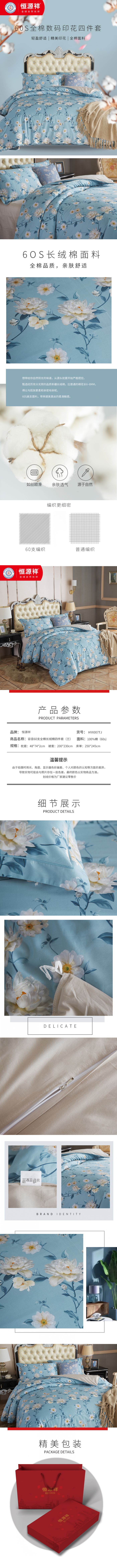 恒源祥床品.60支全棉长绒棉四件套-容音(兰)HYX007TJ
