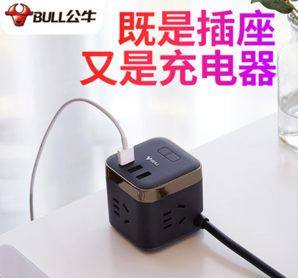 一键开关,可控制3个USB接口和3个五孔插座的通断电