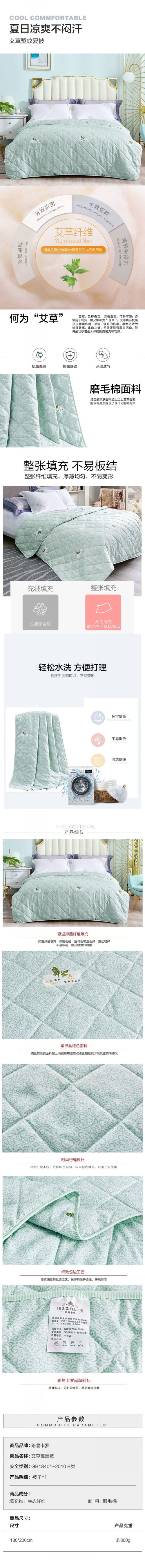 路易卡罗艾草养生被:面料采用优质磨毛面料,手感柔软舒适,面料采用特殊工艺,味道清香填充超细纤维,味道清香。