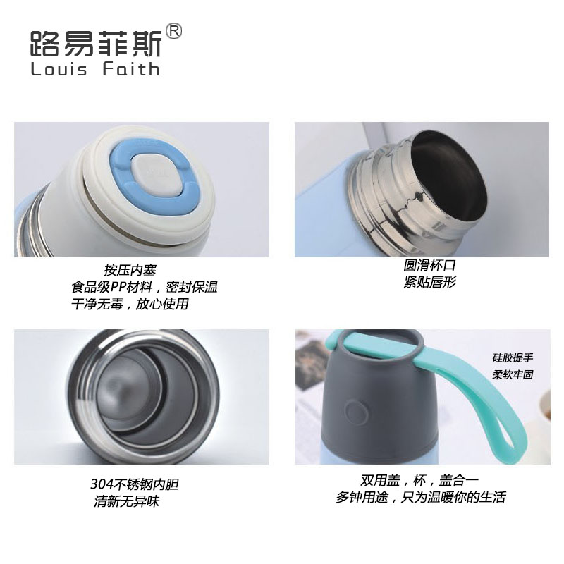 2、一杯两盖式设计,既增强了保温效果,也方便生活使用,出行旅游,杯盖当作杯子使用。