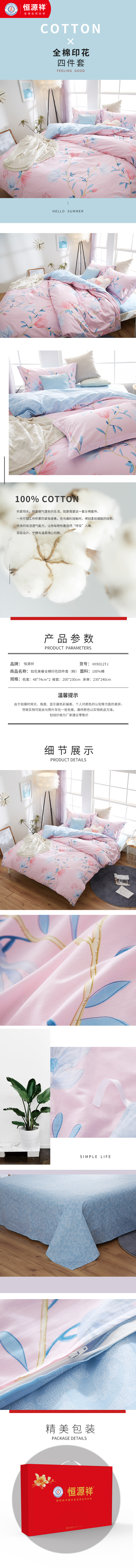 恒源祥床品.全棉印花四件套-如花美眷(粉)HYX012TJ