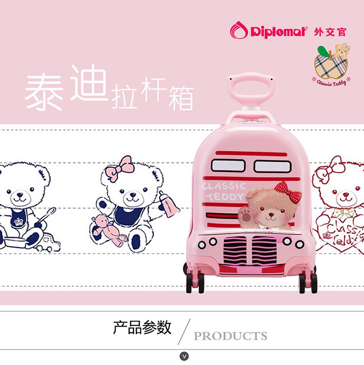 外交官精典泰迪粉色16寸拉杆箱TT-1709