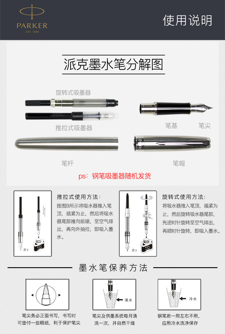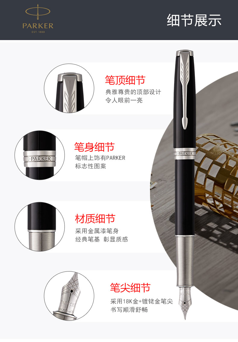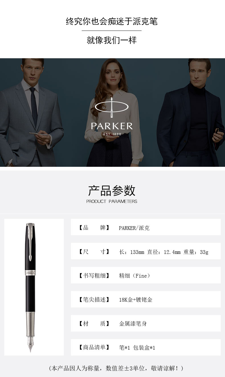 商品名称:派克(PARKER)2015卓尔纯黑丽雅白夹墨水笔 类型:钢笔 商品属性:笔尖:18K金+镀铑金 笔身:黑色丽雅漆 笔饰:镀钯金 笔帽:黑色丽雅漆 数量:单支装 零售价:¥3180