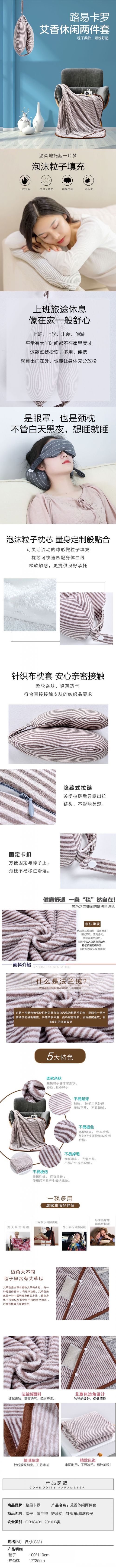 货号:LK-1220 成分:毯子:法兰绒 眼罩护颈枕::针织布/泡沫粒子 规格: 毯子:100*110cm 护颈枕:17*25cm 零售价:462元