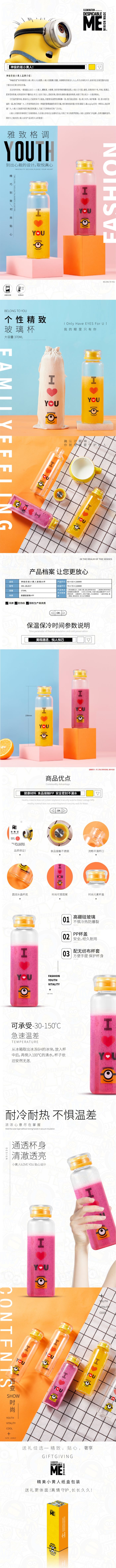 1. 原创图案设计,呆萌小黄人配以鲜明的色彩,用简洁代替繁琐,汇成一个美观通透的玻璃杯