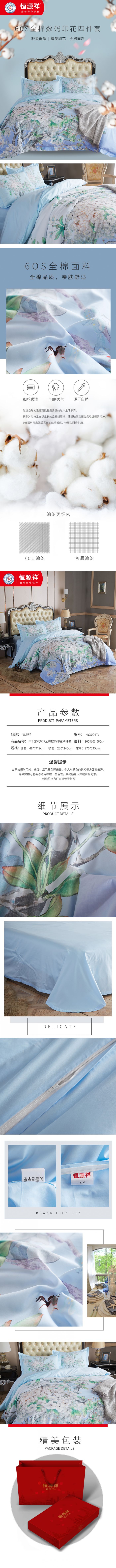 恒源祥床品.60S全棉数码印花四件套-三千繁花HYX004TJ