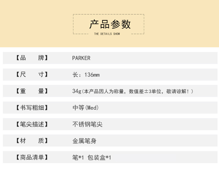 商品名称:派克(PARKER)都市暮光畅享宝珠笔 材质:金属笔身 数量:单支装 零售价:¥698