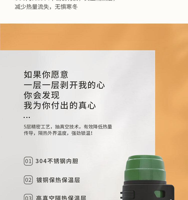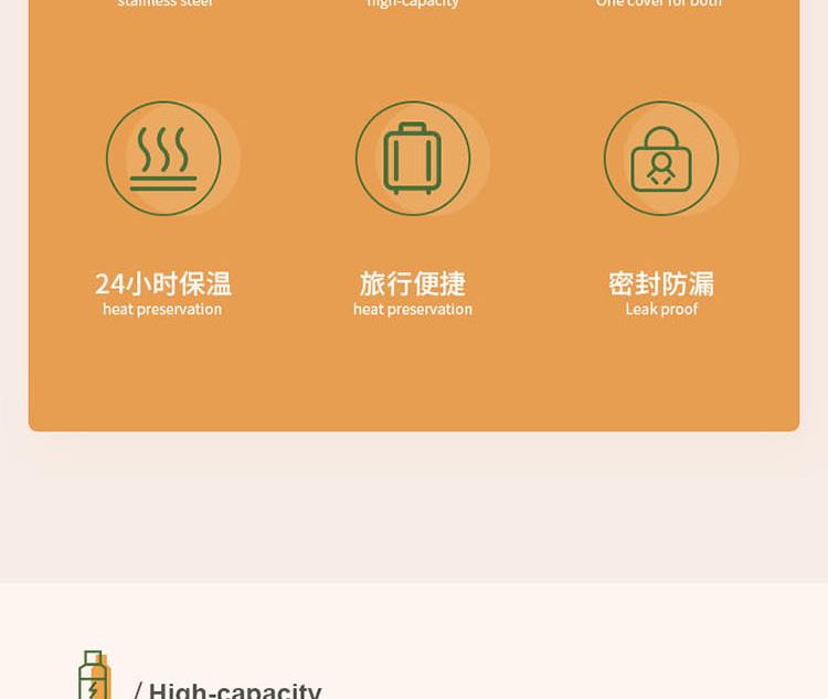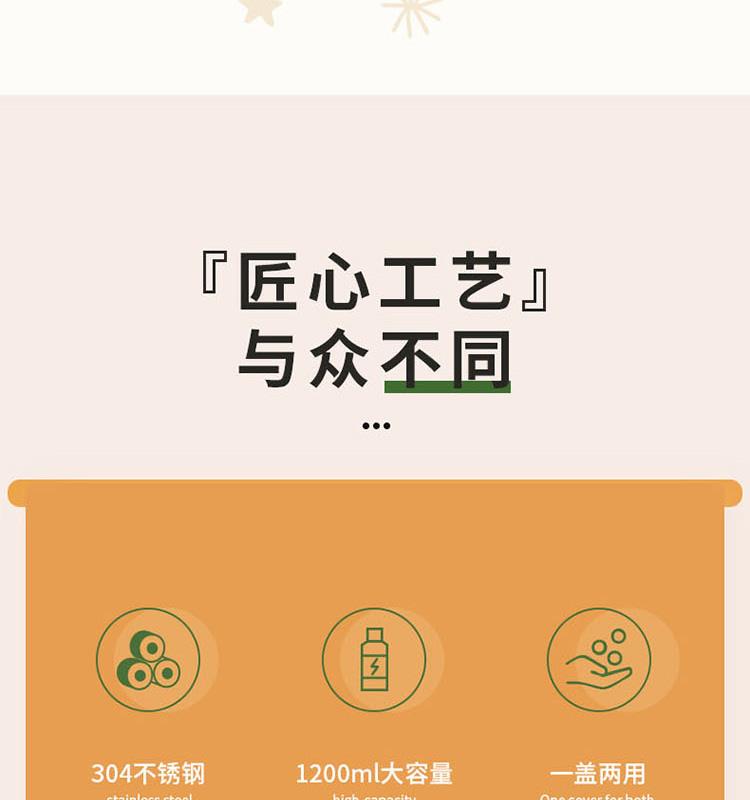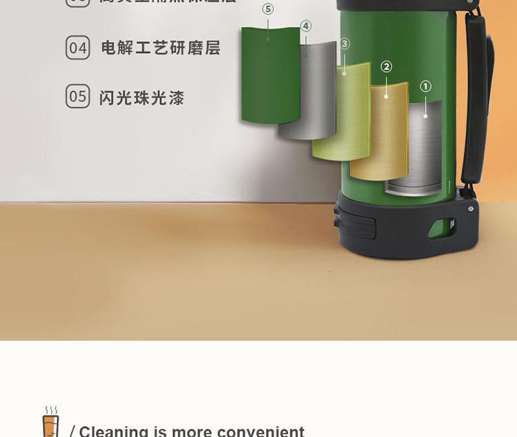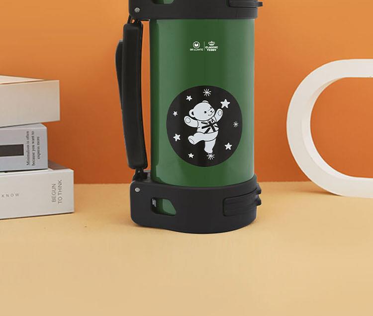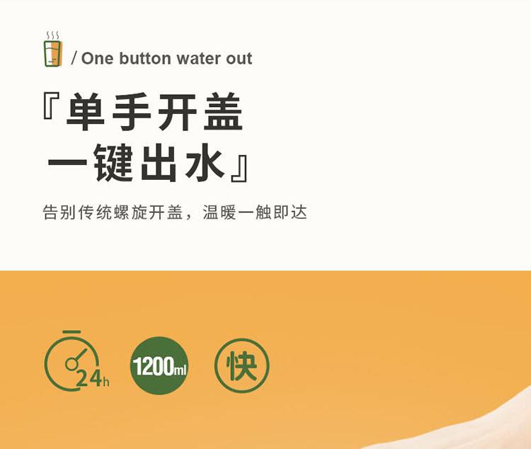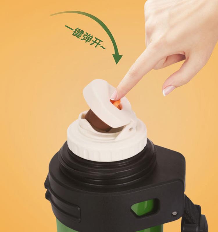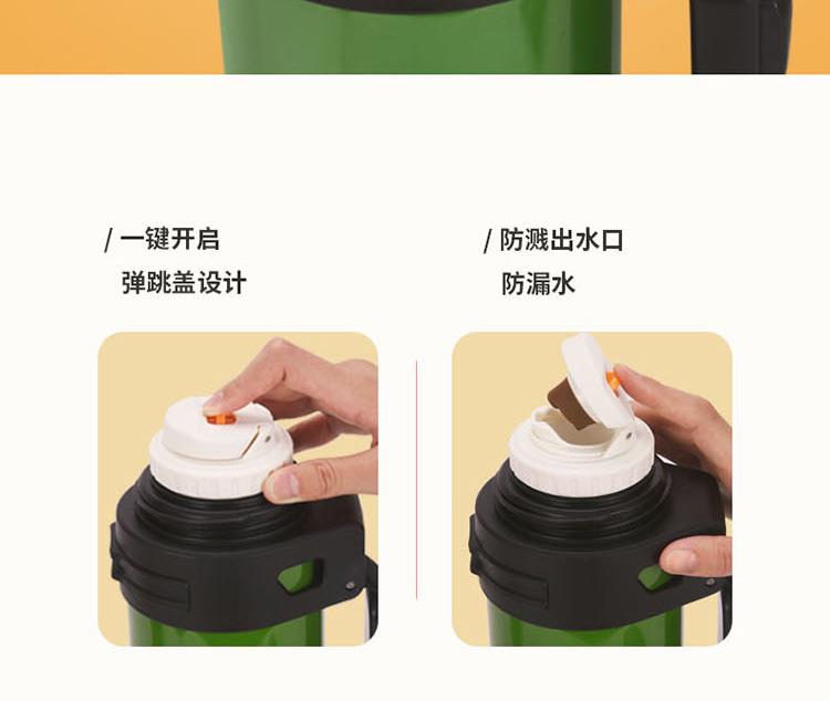 知名品牌联名款,独创发; 内304不锈钢,双重保温保冷24小时,且精密锁水不漏; 双盖设计,随时满足多人需求; 一键开启弹跳盖设计,小口径,畅饮更便捷; 人体工程学伸缩提手,内赠尼龙背带,肩背更轻松; 颠覆传统热水瓶,给你更安全的选择。