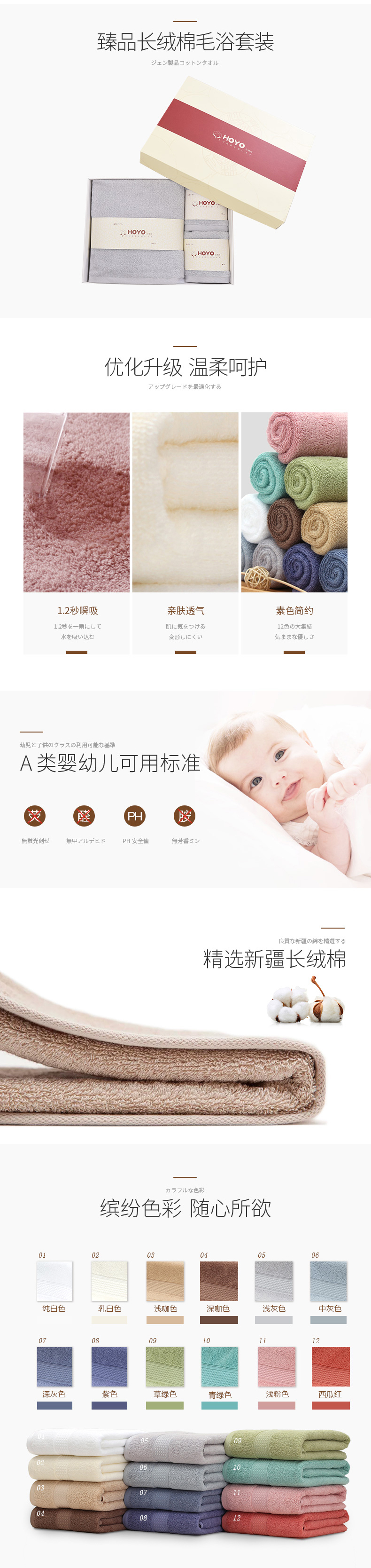 HOYO 7294-臻品长绒棉毛巾浴巾三件套