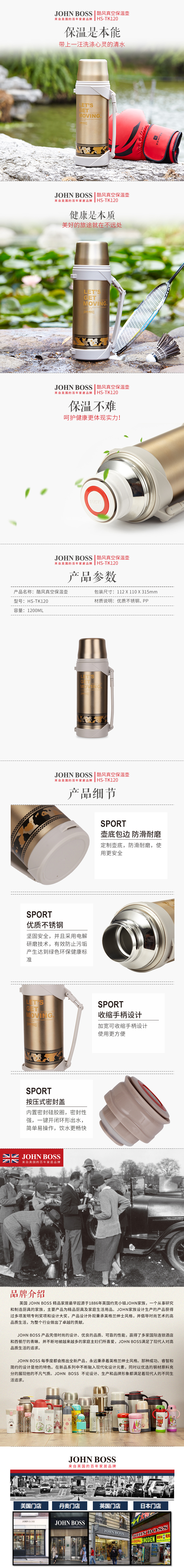 JOHN BOSS酷风真空保温壶 HS-TK120