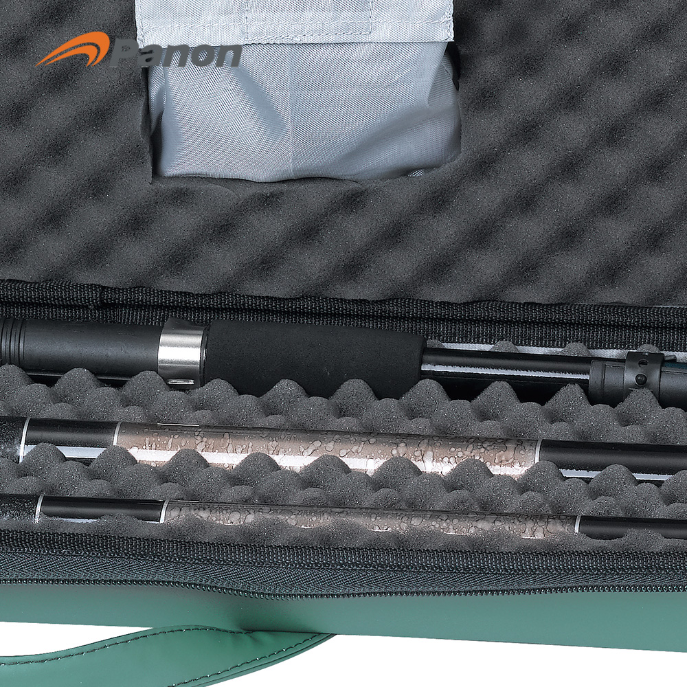 攀能渔具套装 产品尺寸:59.5*8.0*17.5CM 彩盒尺寸:60.0*8.7*19.5CM 外箱尺寸:61*44.5*41CM 装箱数量:10PCS 重量:13.5KG/箱 配件:手竿*2(3.6米、4.5米)、2.1米海竿、渔轮,鱼线,鱼铃,鱼钩、军绿色EVA外盒 材质:EVA外盒、碳纤维