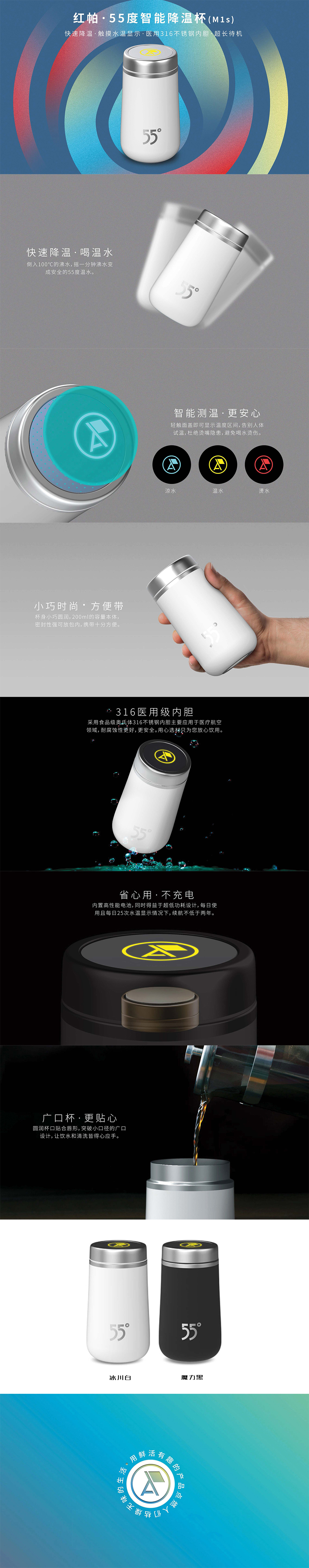 推荐理由:快速降温的水杯,将刚烧开的沸水倒入,摇一分钟,沸水变温水;安全耐腐蚀316不锈钢内胆;呼吸灯丝印LOGO,三档温度,三色变色