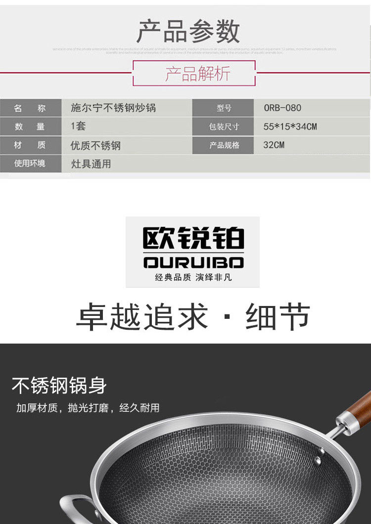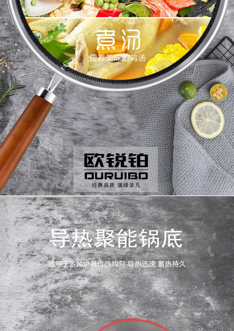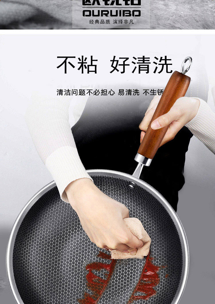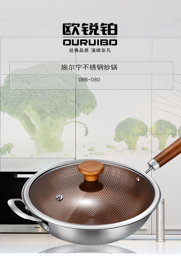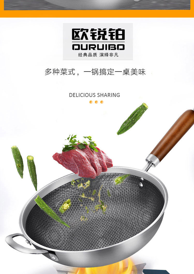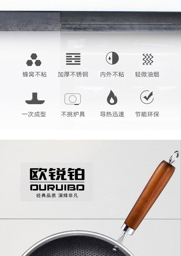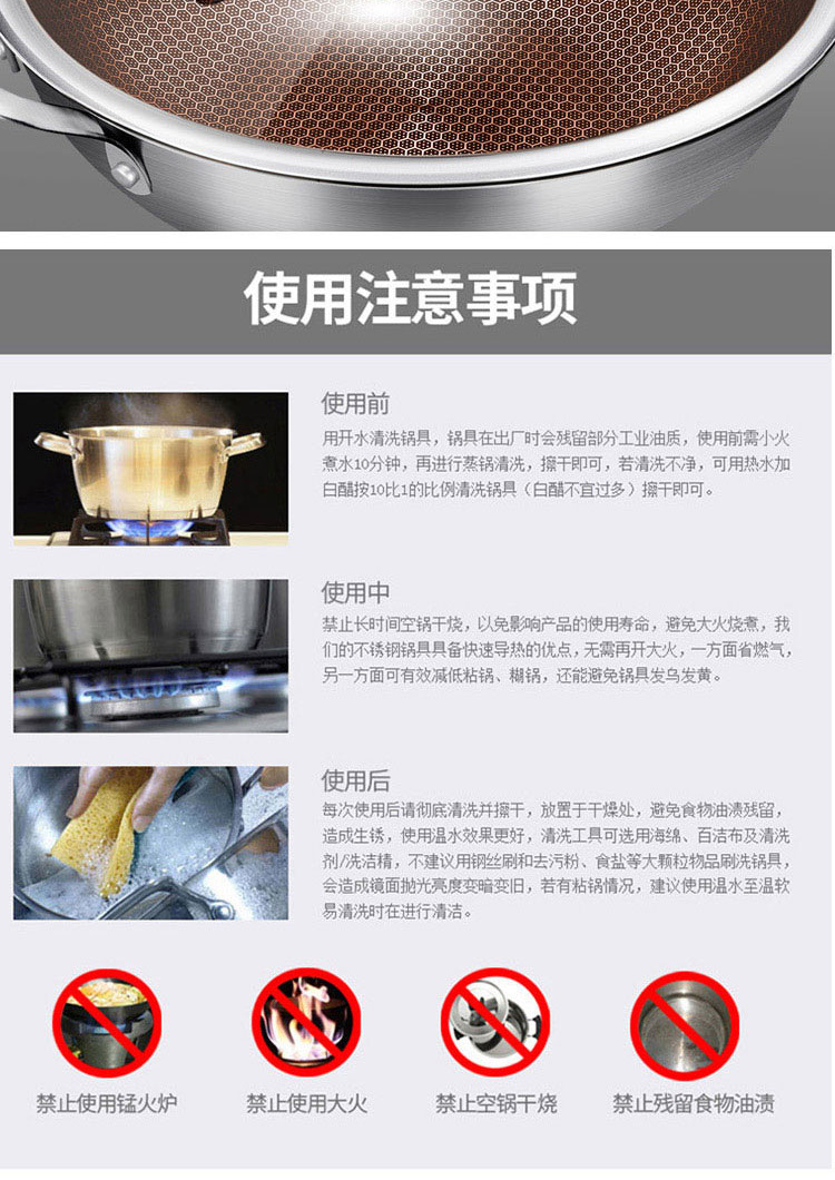 产品特点: 食品级接触430不锈钢,受热快而均匀;健康无涂层,钻石蜂窝纹凹凸有序,有很好的物理不粘效果。茶色高强度钢化玻璃盖,可透视锅内食物,灵活调节烹饪;实木手柄,经典的锅体,带动了古朴自然,又展现科技魅力。
