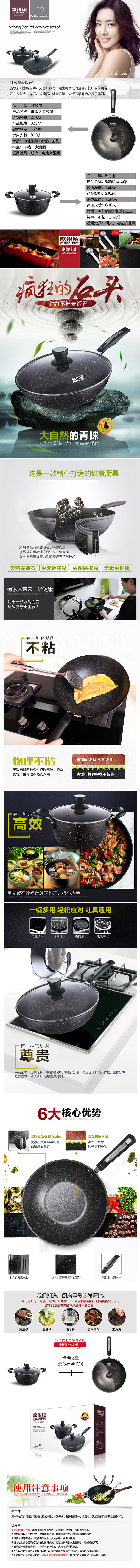 产品特点:产品特点:钢化玻璃盖可视,美味一目了然;更好掌控烹饪程度。优质铸铁基材,聚能导热快速均匀,融合健康麦饭石元素,不粘效果显著;手柄设计结合人体工程学,隔热防烫效果好,拿放舒适;组合功能强大:煲、煎、炒、炖、焖想用哪个用哪个。适用电磁炉及明火灶具。(灶具通用)