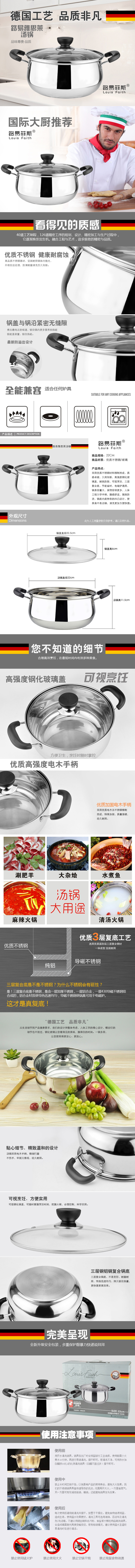 1、采用国际标准不锈钢板材,精工制作,持久耐用,导热均匀,镜面抛光,易清洗;
