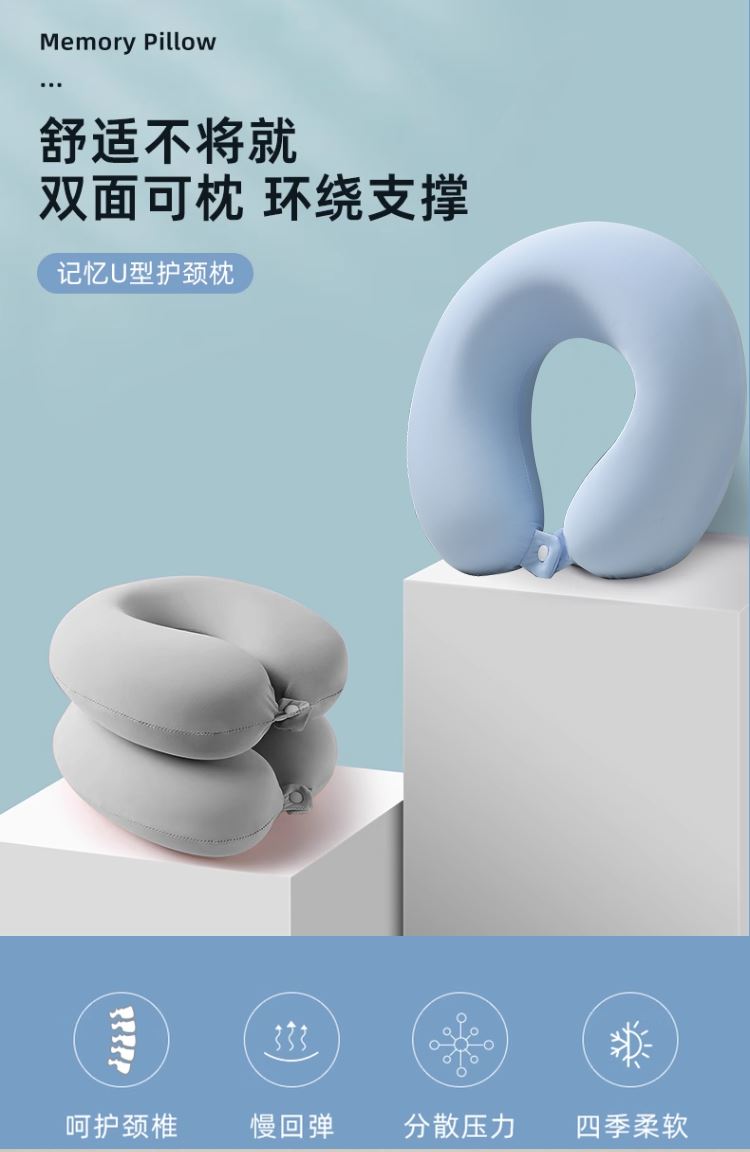 花花公子凉感丝U型枕 规格 :30*29*10cm 面料:凉感丝 重量:800克 填充物:记忆棉 包装:收纳袋/收纳盒 随意搭配