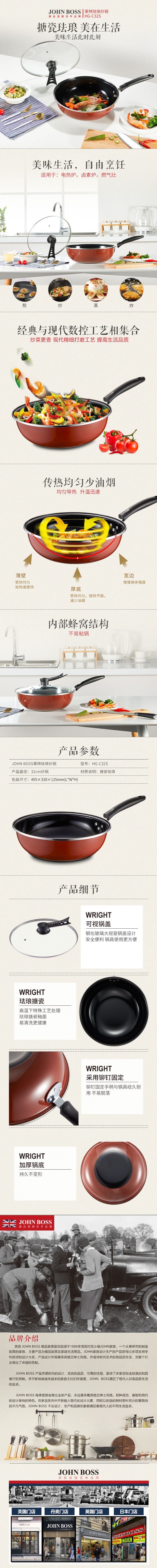 JOHN BOSS莱特珐琅炒锅 HG-C32S