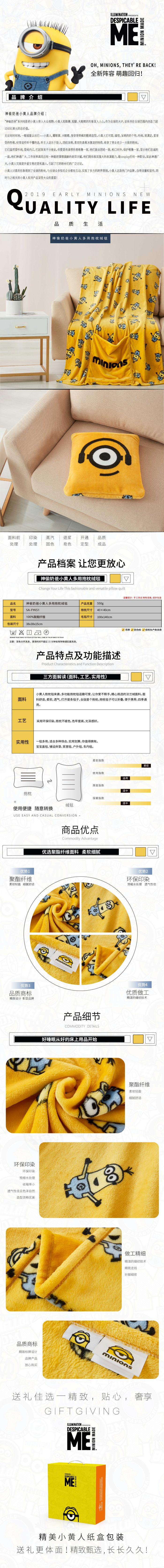 1. 小黄人抱枕毯来袭,多功能抱枕毯逗趣可爱,得你喜爱。