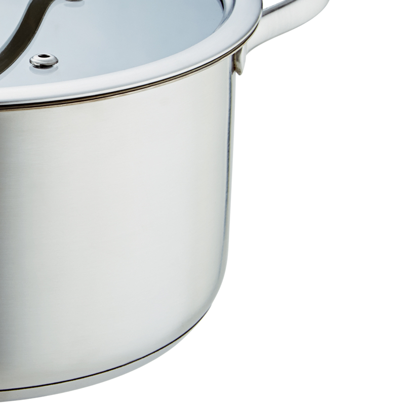 规格:奶锅16cm、汤锅20cm、煎锅24cm 材质:优质不锈钢 装箱数:6套 产品说明: 1.采用奥氏体不锈钢精制而成。 2.锅身内外哑光磨砂工艺处理,细腻光滑,防刮耐磨。 3.锅盖采用平板宽边超钢化玻璃设计,钢盖与钢密结合。 4.全钢人性化手柄,隔热防烫,安全方便。 5.超厚的锅身和超厚复底设计,加热快,坚固耐用。 6.适用于煤气炉,天然气炉,电炉,电磁炉等等,节能省时, 环保经济。