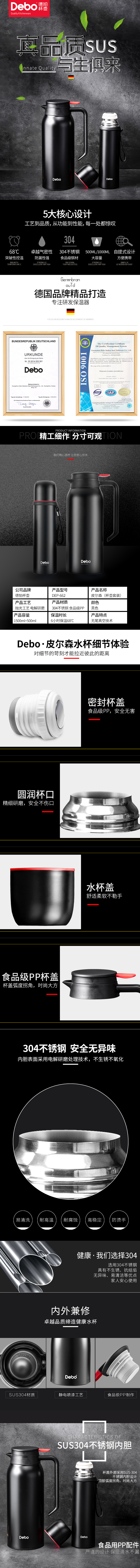 ·保温杯、水壶采用SUS304材质,并使用电解研磨工艺、12微米镀铜层处理、无尾真空技术,可持续强力保温。