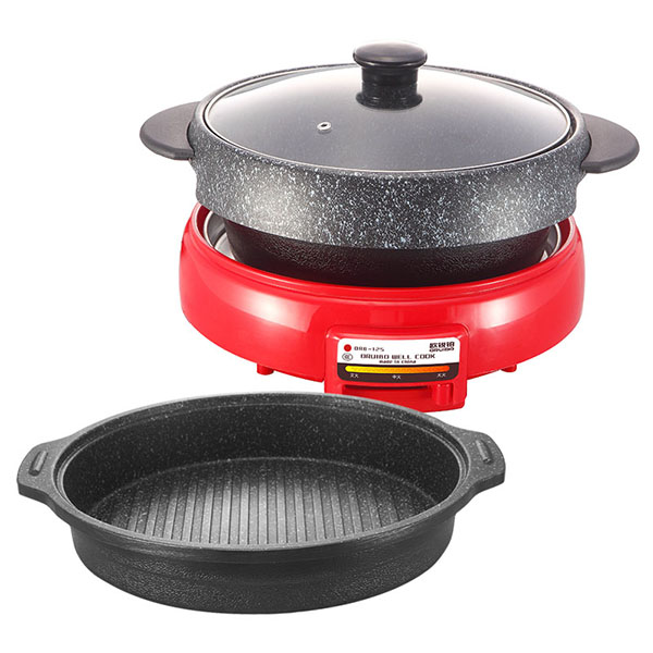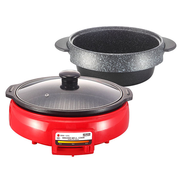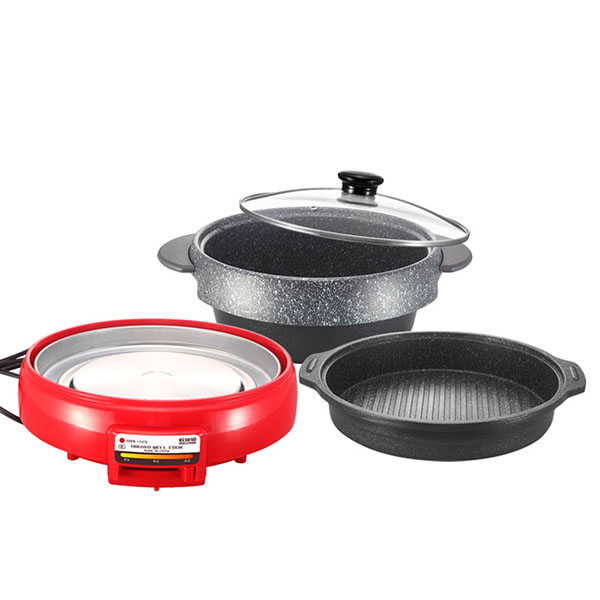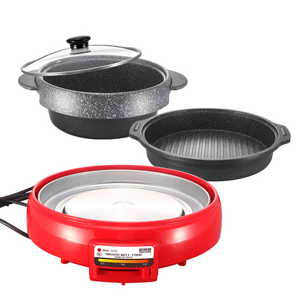 煎盘/火锅锅体使用优质铝材导热均匀快速,想用哪个用哪个;麦饭石不粘安全健康,耐磨性能好。烤盘表面条纹构造,导油更均匀,烧烤更美味。火锅外展式飞风更用心设计,不易把汤水外涉流到电炉。