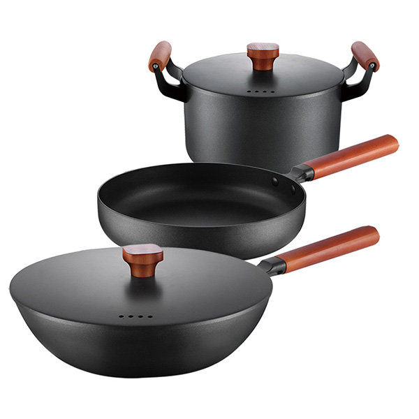 优质精铸铁材质,导热迅速均匀;搭配天然实木手柄,展现田园风自然极简美,经典高贵;新特氟龙物理不粘效果显著,烹饪不易焦糊易清洗。组合功能强大:煲、煎、炒、炖、焖想用哪个用哪个。适用电磁炉及明火灶具。(灶具通用)
