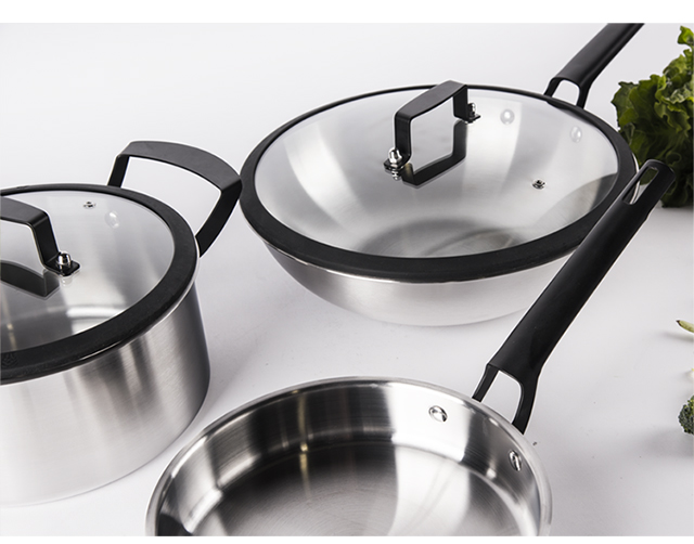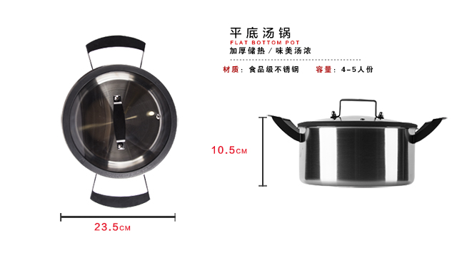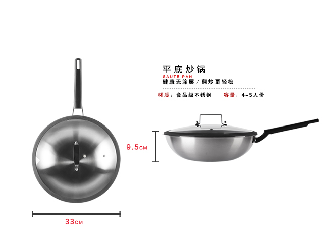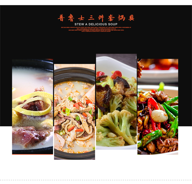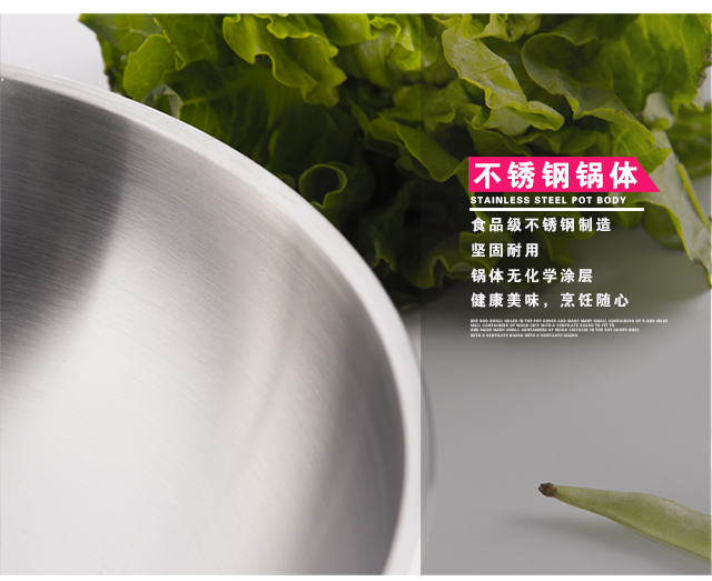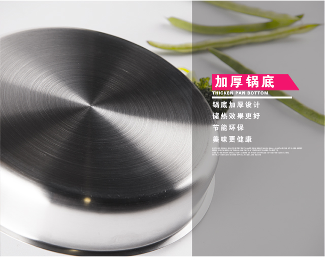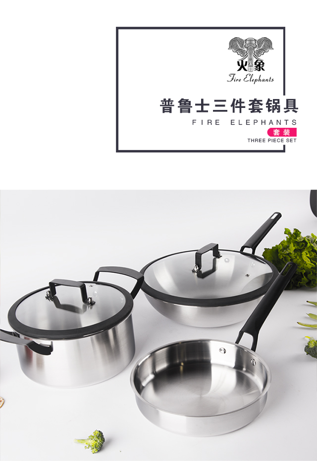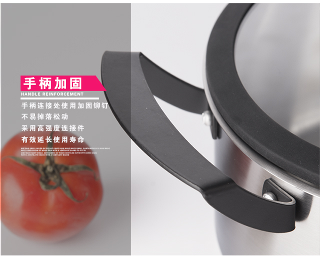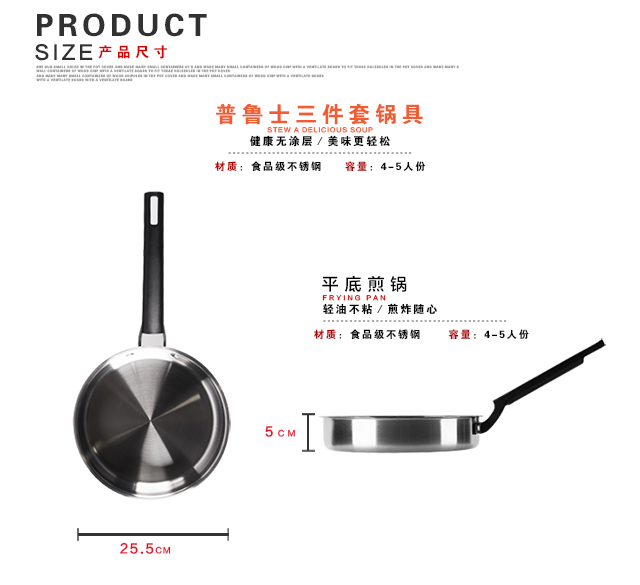 产品型号:HXG-TZ045 产品规格:炒锅32CM/汤锅24CM/煎锅24CM 产品材质:430铁素体不锈钢 彩盒尺寸(cm):65*15.5*35cm 外箱尺寸(cm):80.5*37*66.5cm 箱体积(m³):0.19807025m³ 装箱数:5pcs 采用优质430铁素体不锈钢打造,健康环保,光滑易清洁。 可透视钢化玻璃盖,配上食品级硅胶圈,密封性能加强,可使锅内产生微压,有效锁住食物营养。 产品外观白与黑的完美搭配,彰显高贵典雅。